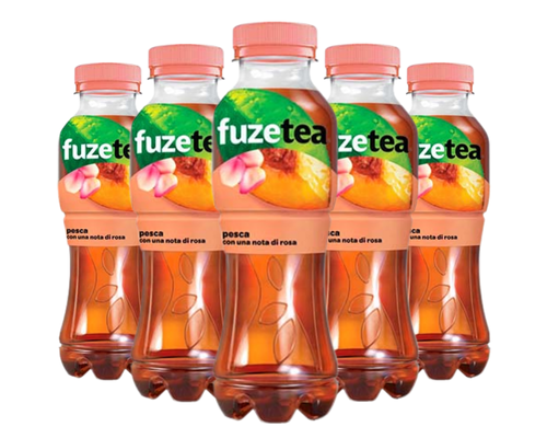 Fuze Tea Pesca e Rosa è un gustoso incontro tra il sapore del tè, il gusto della pesca e una delicata nota di rosa,